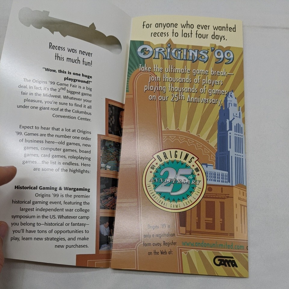 1999 Origins International Game Expo And Fair 25th Anniversary Advertisement. Combined Shipping (for USA Customers Only)