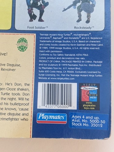 Up for sale is a new on card 1999 TMNT Don Undercover Turtle Teenage Mutant Ninja Turtles 10 Back Card.
