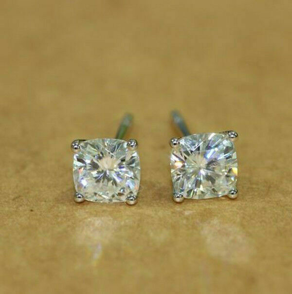 - 1Ctw Cushion-Cut Sparkle Moissanite Stud Earrings 14k White Gold Over Silver