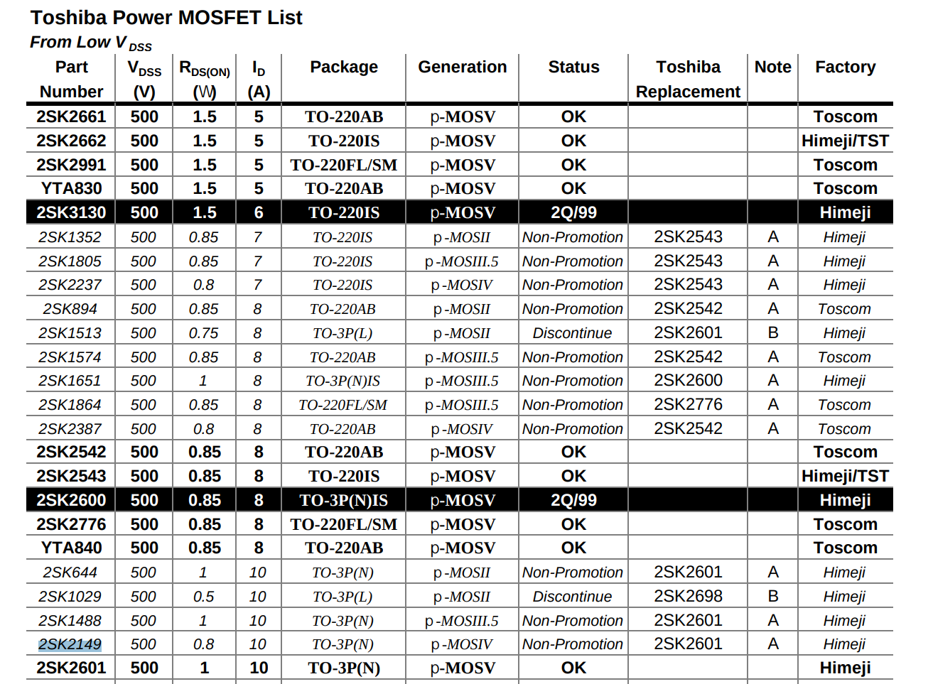 Primary image for 1Pcs 2SK2149 K2149 Toshiba N-Ch Power MOSFET 500V 10A 0.8Ohm TO-3P