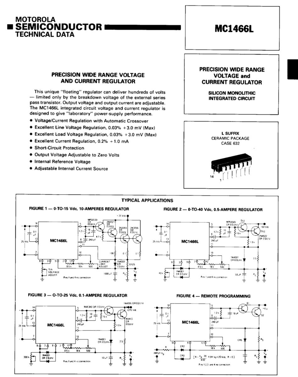 1X MC1466L MOTOROLA Precision Wide Range Voltage and Current Regulator CDIP-14