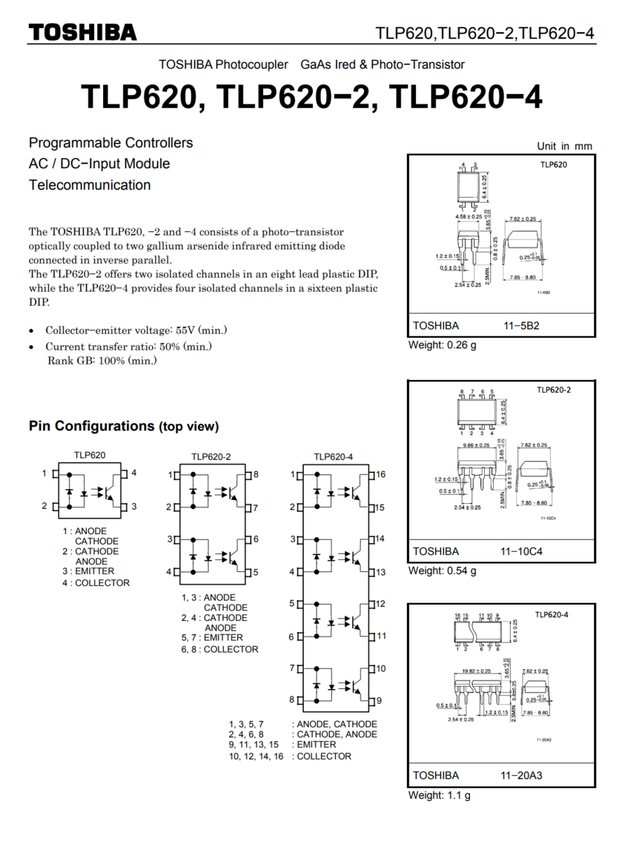 1X TLP620-4 Toshiba Quad Phototransistor Optocoupler 4 Channel 5000Vrms DIP-16