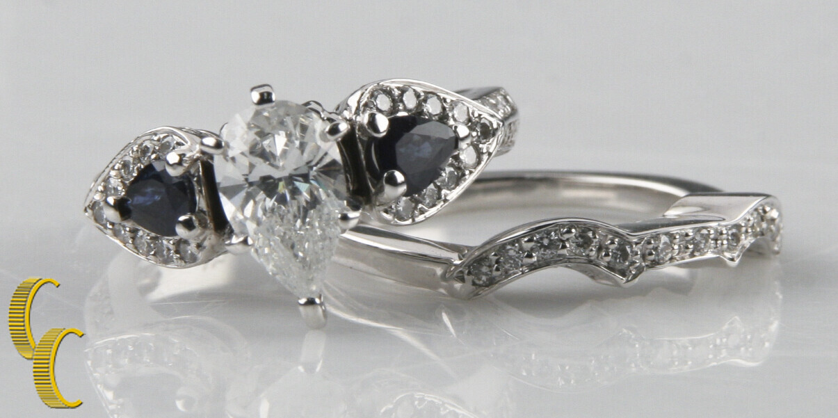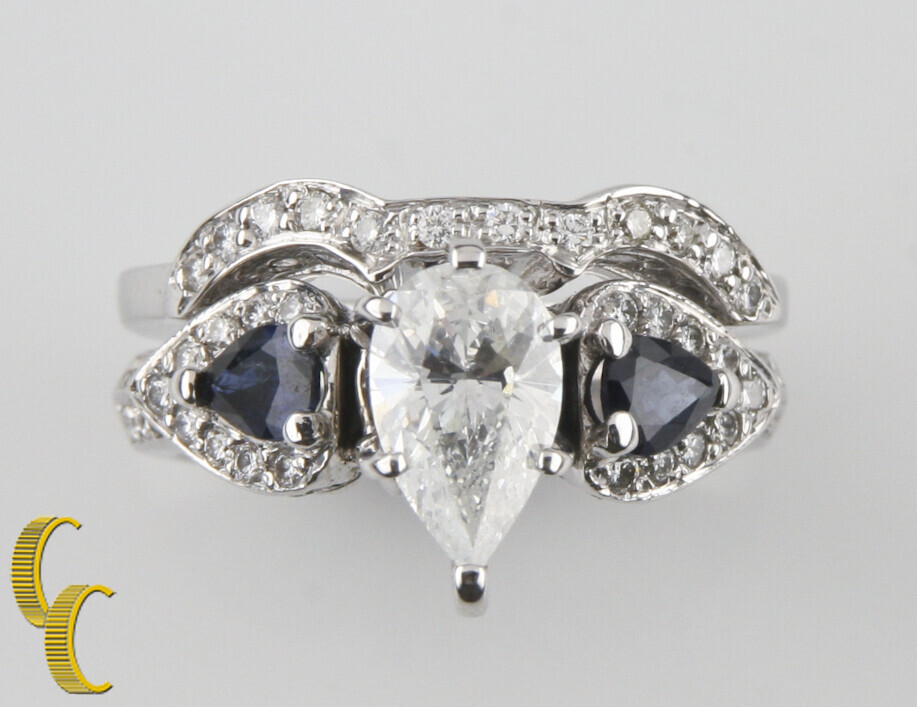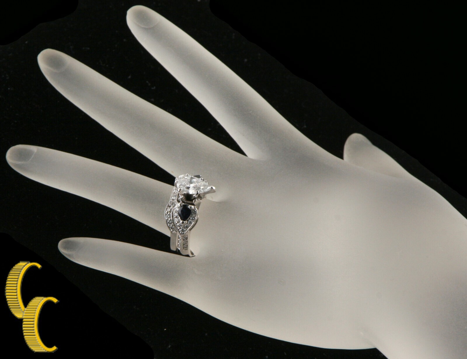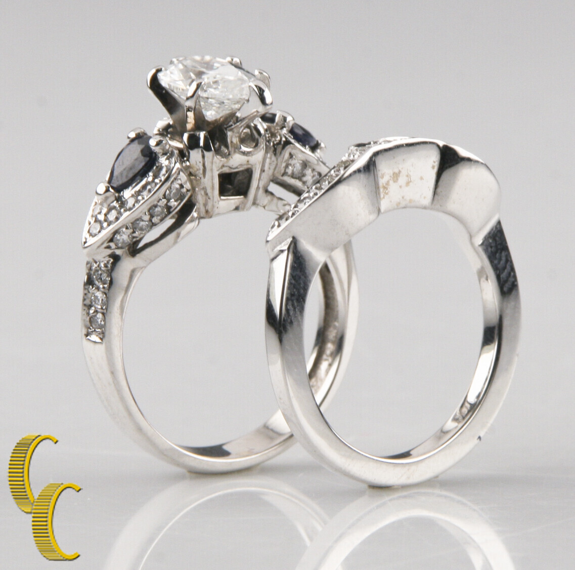 - 2,00 Karat Diamant & Saphir 18k Weißgold Ehering Set Größe 7,25