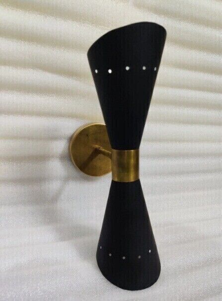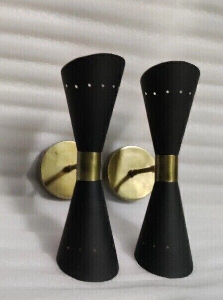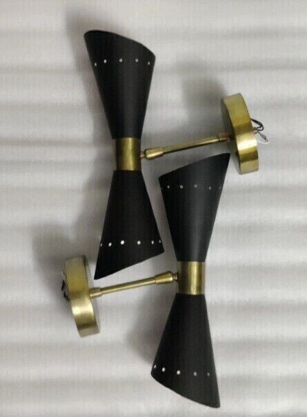2 Black Italian Fixture of 1960s Mid Century Black Italian Wall Sconces