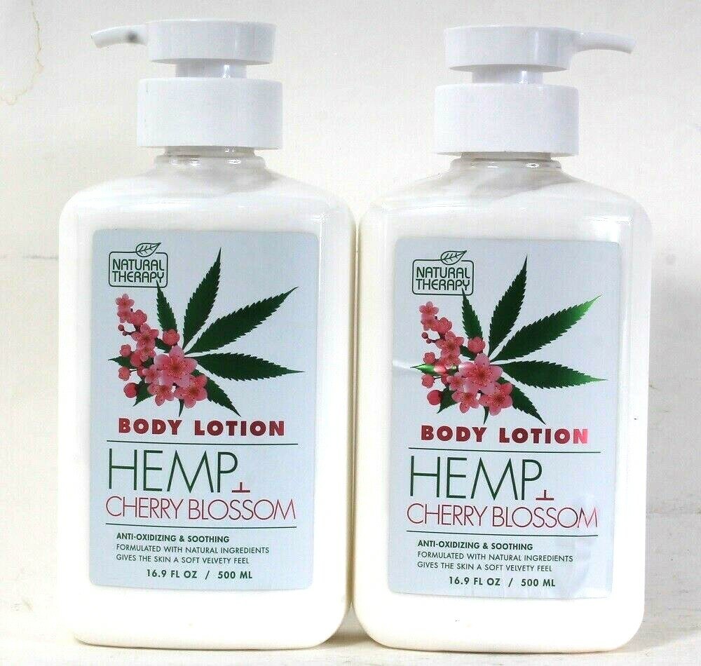 - 2 Bottles Natural Therapy 16.9 Oz Hemp & Cherry Blossom Soothing Body Lotion