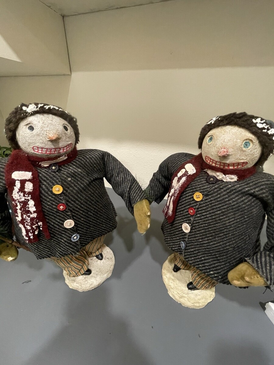 2 ESC Trading Cody Foster Snowman Folk Doll Figurine 15” Country Primitive LOT