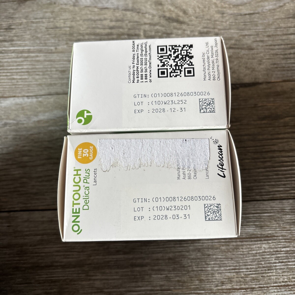 2 OneTouch Delica Plus, Fine 30 Gauge Lancets (200 Total) 100ct Exp.03/28-03/29 Packages contain shelf-wear, retail stickers, or cosmetic imperfections Packaging may vary