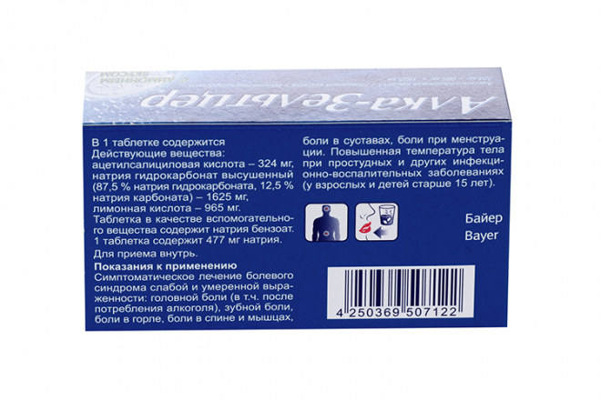 The drug is intended for oral administration, in the form of effervescent tablets, with a pleasant lemon taste. Alka Seltzer relieves the symptoms of headache, toothache, sore throat, menstrual pain, muscle and joint pain, back pain, mild arthritis pain. It works for colds or flu for the symptomatic treatment of pain and fever.