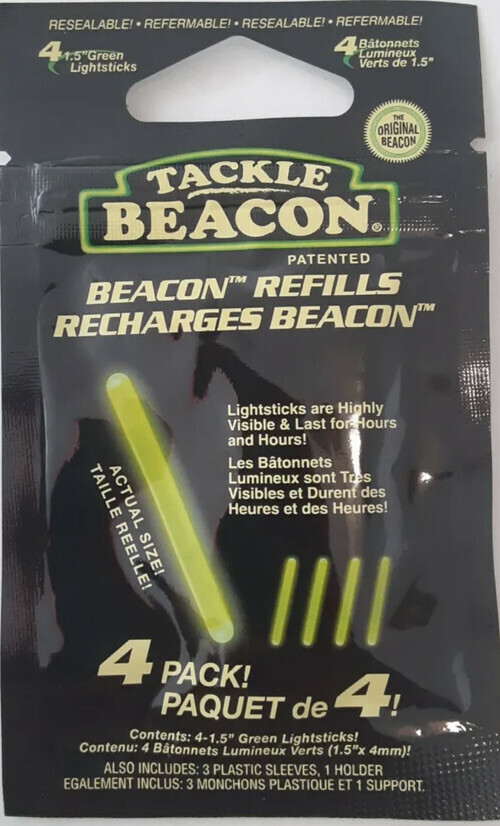 - 2 PACk Rod & Bobber Beacon Refills, Recharges Beacon Pack of 4, 1.5" Green Stick