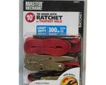 Master Mechanic, 2 Pack, 1" x 10", Ratchet Tie Down, 900 LB Rated Capacity, 300 LB Working Load Limit, Hi-Test, Abrasion Resistant, Long Last Webbing, Compact, Non-Marring Vinyl Coated S-Hooks.