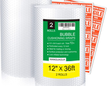 - 2 Pack 12 Inch X 72 Ft Total Bubble Packing Wrap for Moving Boxes Shipping Cushi