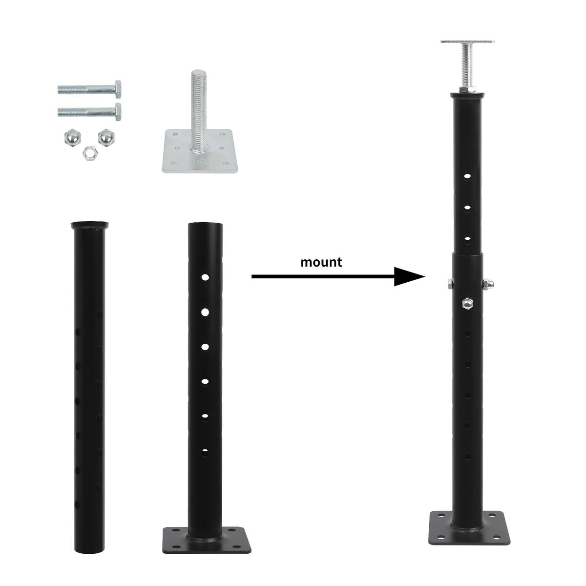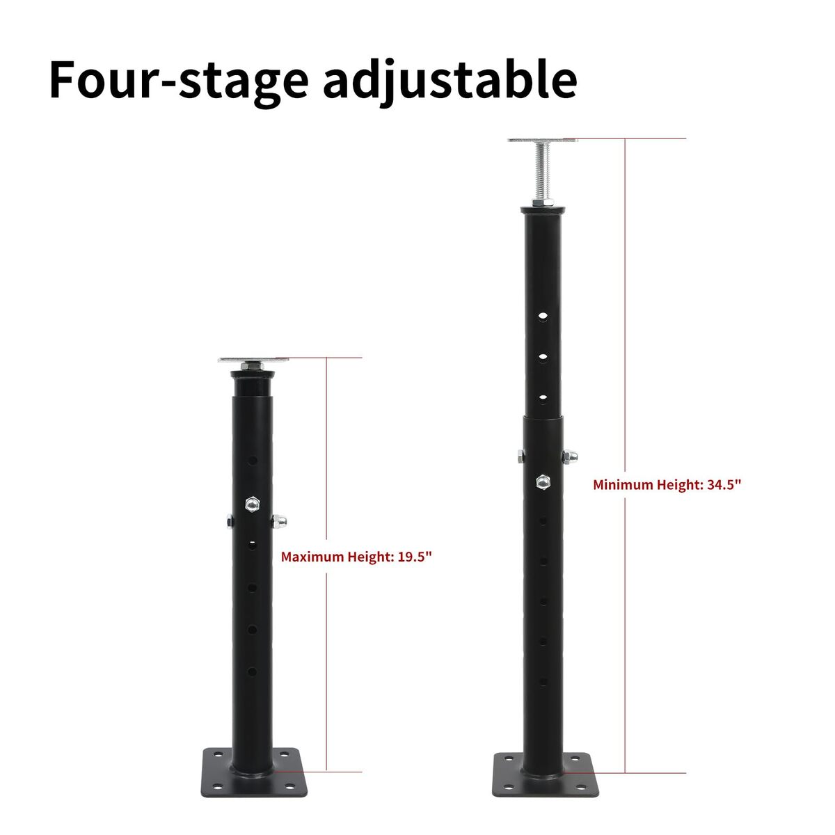 Adjustable Height Options Available in 5"-8", 11"-16", 16"-20"and 19"-35" the steel support posts offer flexible height ranges to meet different leveling and stabilizing needs