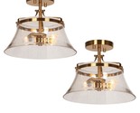 2-Pack LNC Modern 11.8" 2-Light Plated Brass Semi-Flush Mount Light Seeded Shade