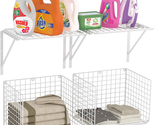 2 Pack Sturdy Wall Mount Laundry Shelf with Clothes Drying Rack and Wire Baskets for Your Organization and Storage