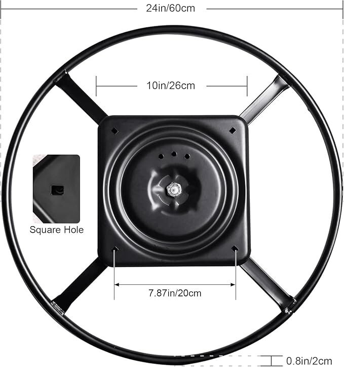 24 inch round swivel base, with 10 inch square swivel mount plate