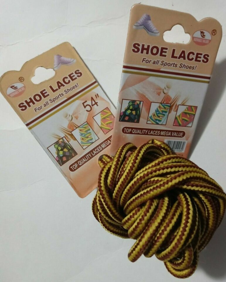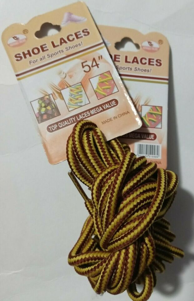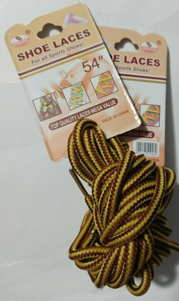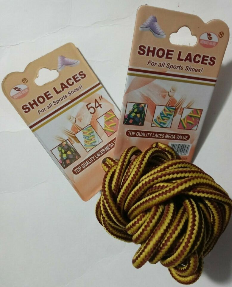 Primary image for 2 Pair Of Round Boot Laces Heavy Duty Sneakers, Work Hiking Boots Yellow & Brown