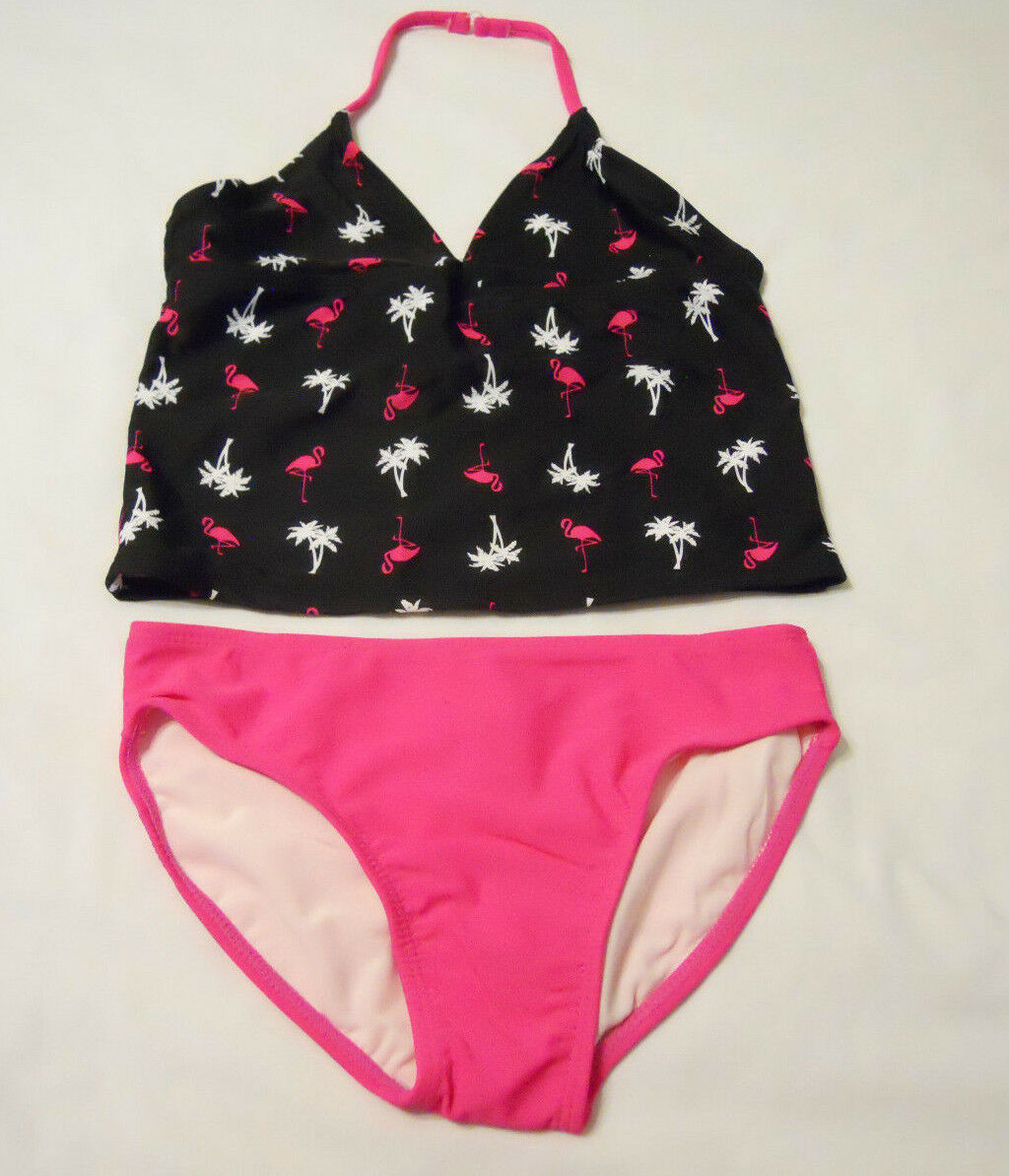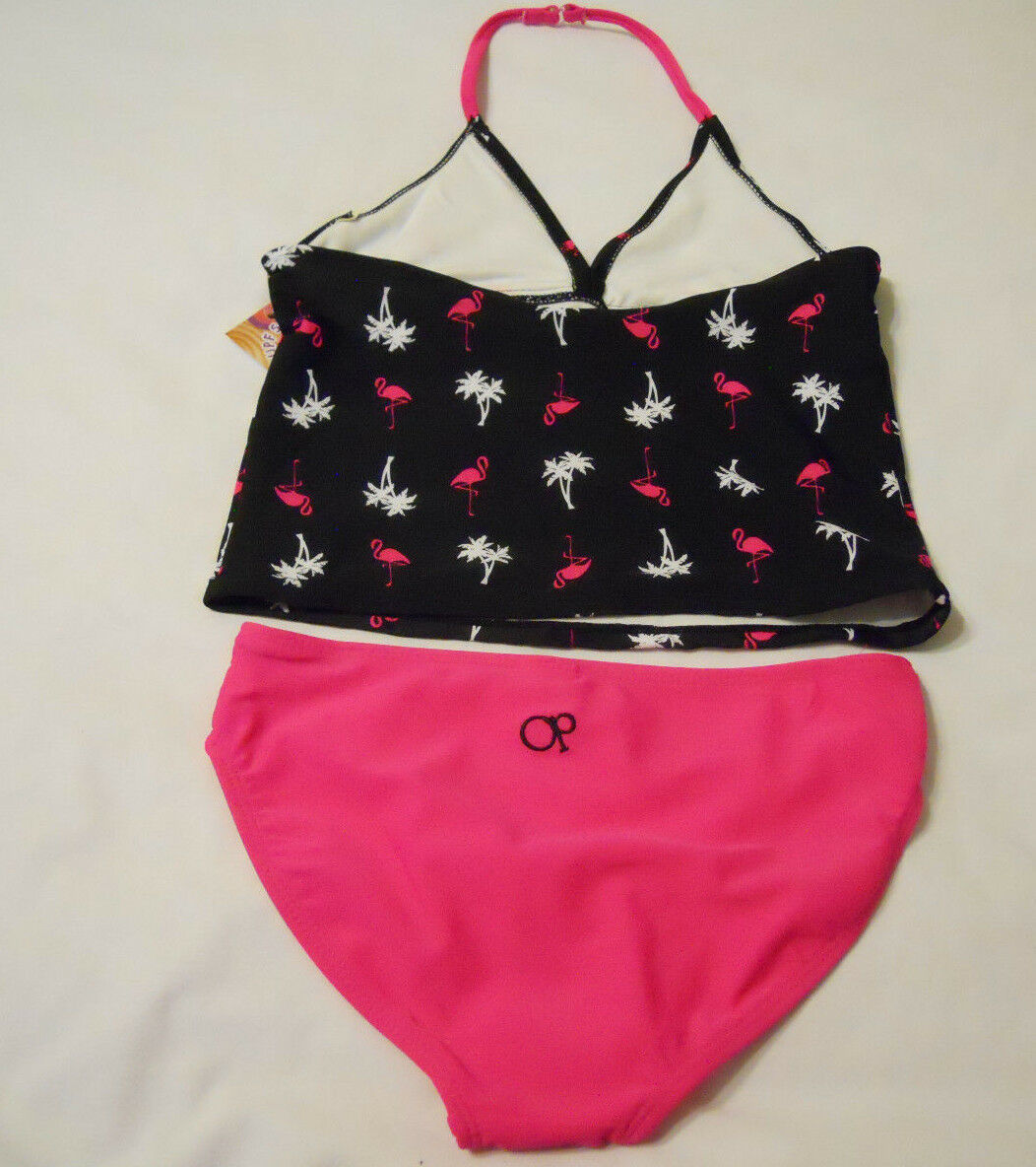 2-Piece Op SwimSuit Tankini Set Kids Swimwear Girl XL 14-16 Black Palm UPF 50+