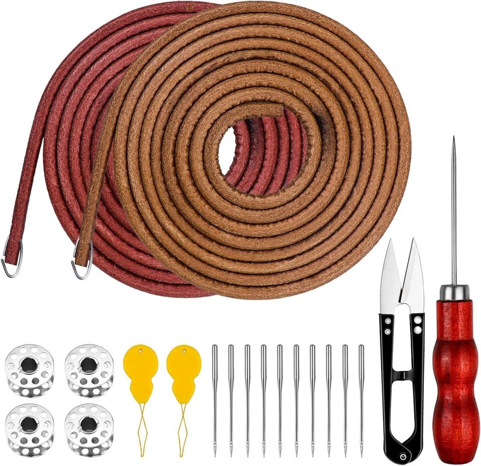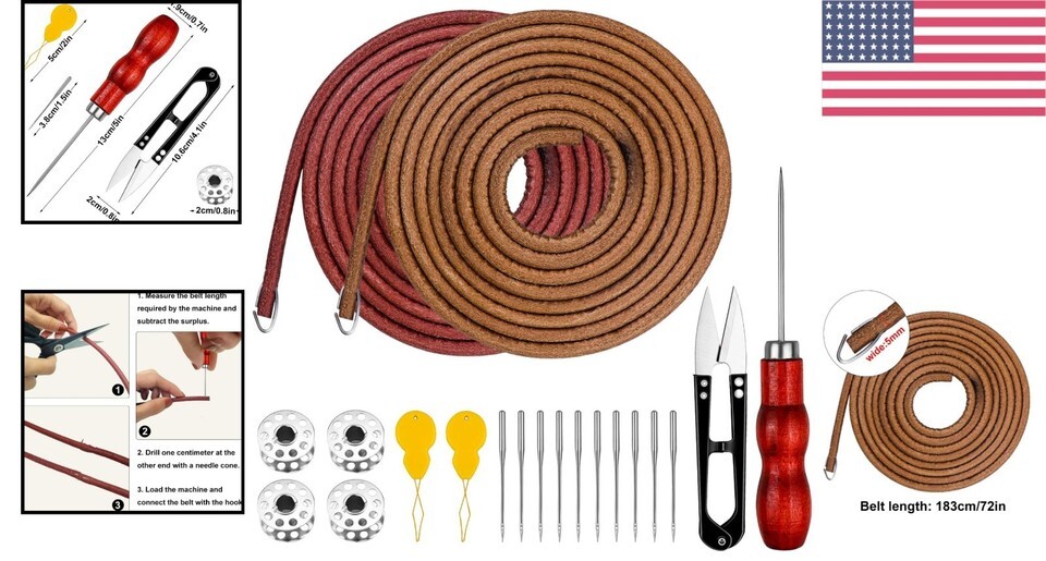 - 2-Piece Treadle Sewing Machine Belt Set - 183cm Leather with Accessories