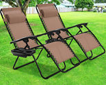 2 Pieces Folding Lounge Chair with Zero Gravity-Brown - Color: Brown