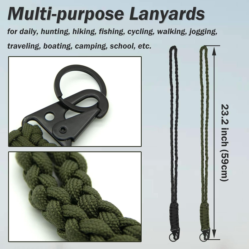 2 Pieces Heavy Duty Paracord Lanyard Braided 550 Necklace Keychains Whistles Wrist Strap Parachute Rope for Outdoor Activities, Camera, ID Card Badge Holder, Wallet and Keys (Black + Olive Green)
