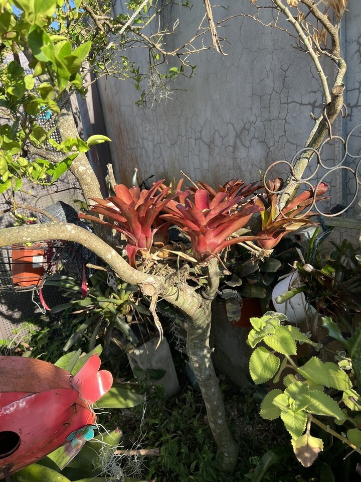 - 2 pups TROPICAL LANDSCAPE mini fireball PLANT Pup Bromeliad colorful