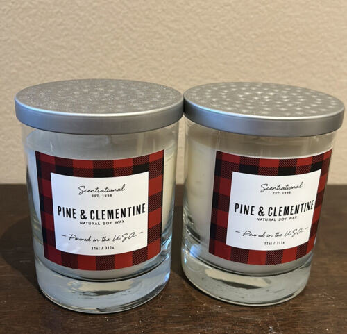 2 Scentsational Pine & Clementine Candle Glass Jar 11 Oz Soy Wax