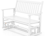- 2 Seats Outdoor Glider Bench with Armrests and Slatted Seat-White - Color: White