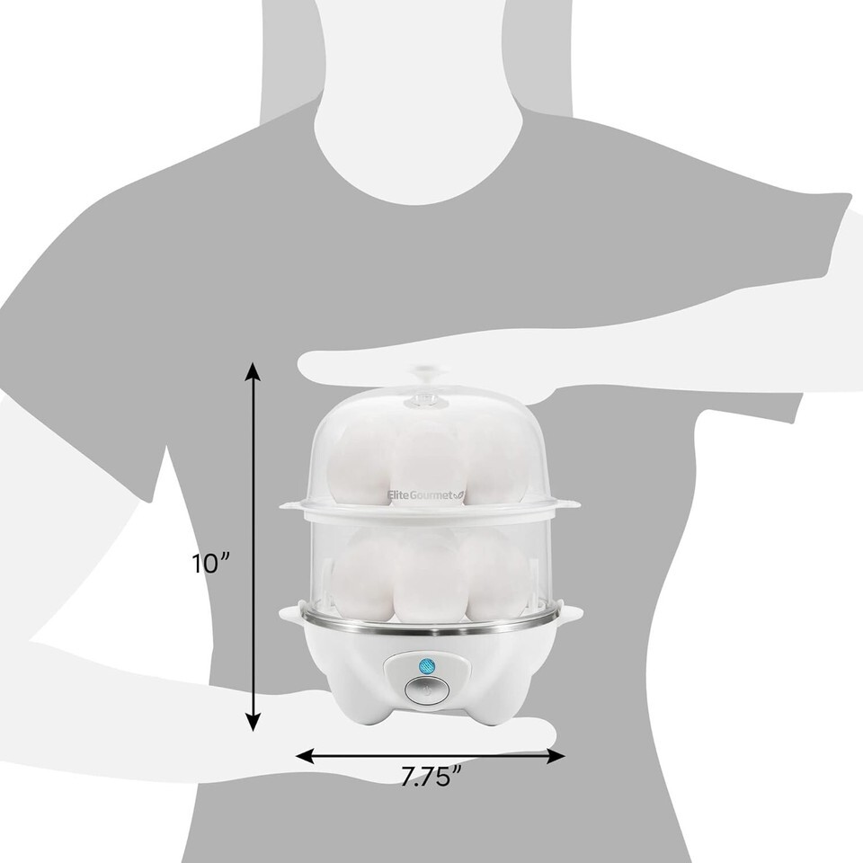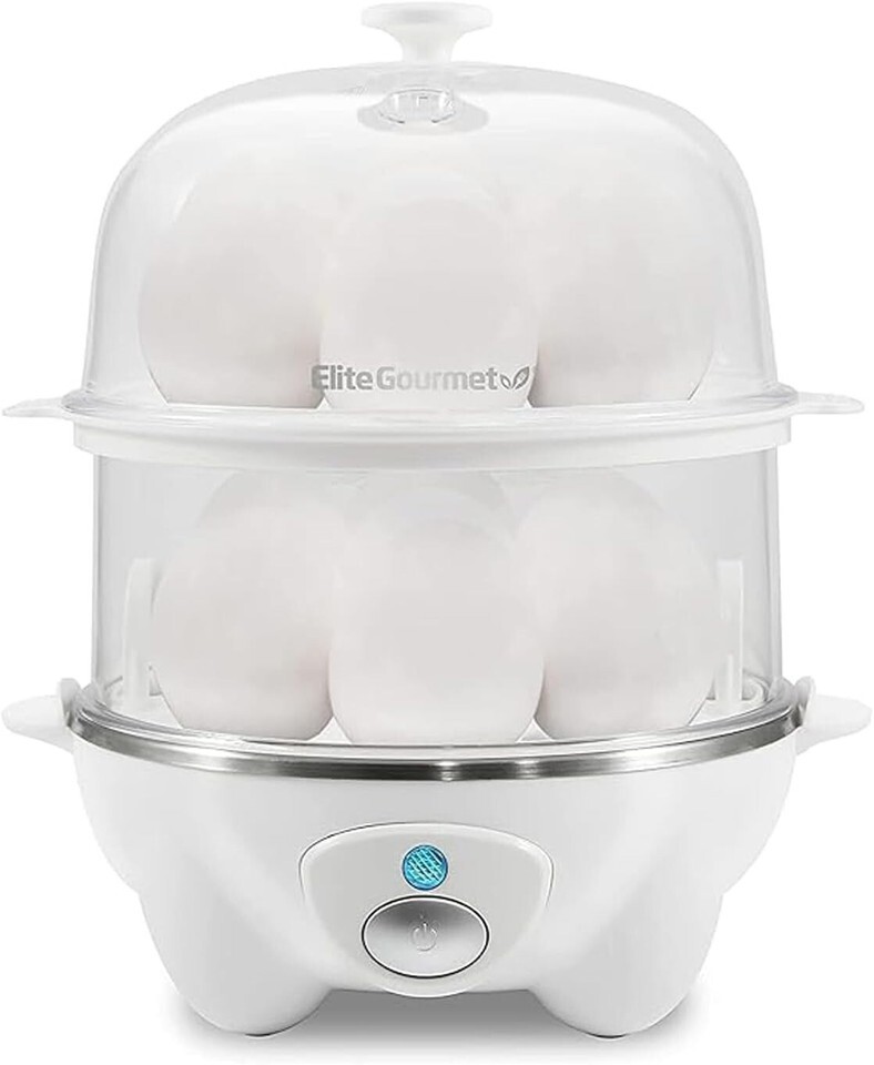 - 2-Tier Rapid Egg Cooker: 14 Egg Capacity with Auto Shut-Off and Poaching Trays