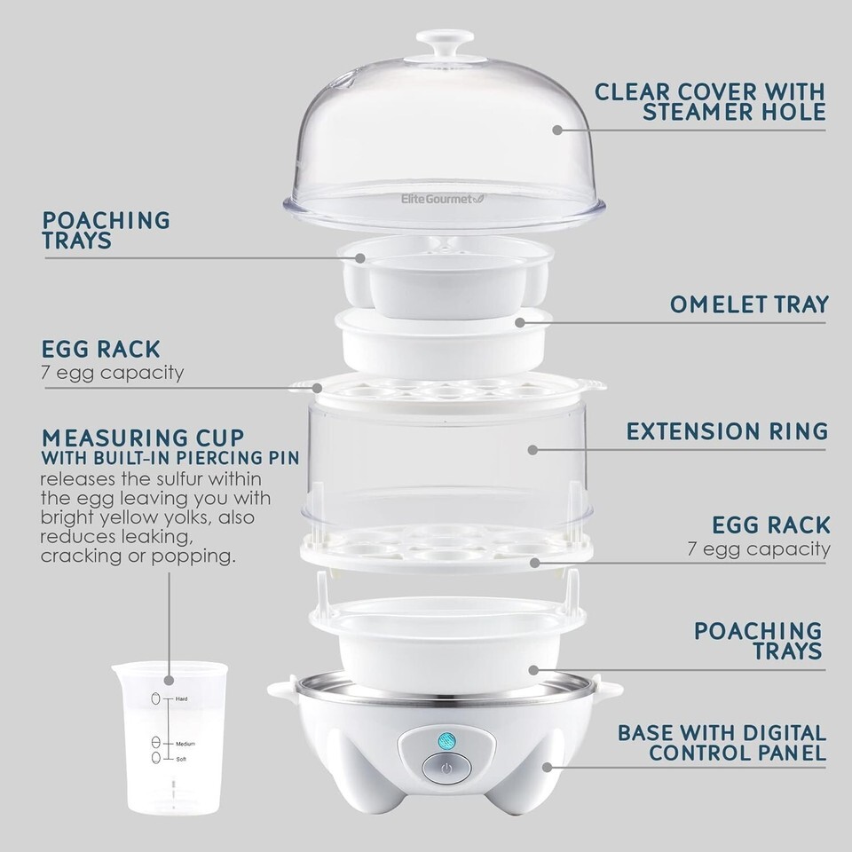 Versatility: This is more than just an egg cooker; it's an all-in-one egg boiler, scrambler, omelet/veggie steamer, and much more! Perfect for pairing with avocado toast or whipping up deviled eggs for gatherings.