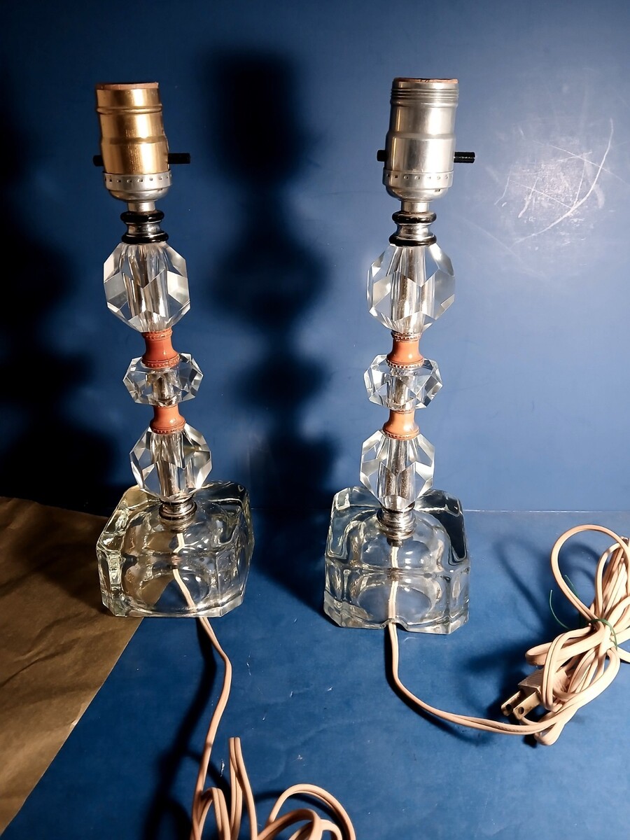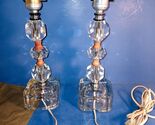 - 2 Vintage Cut Crystal Table Lamps Multi Faceted 12.5 " Boudoir Mid Century works