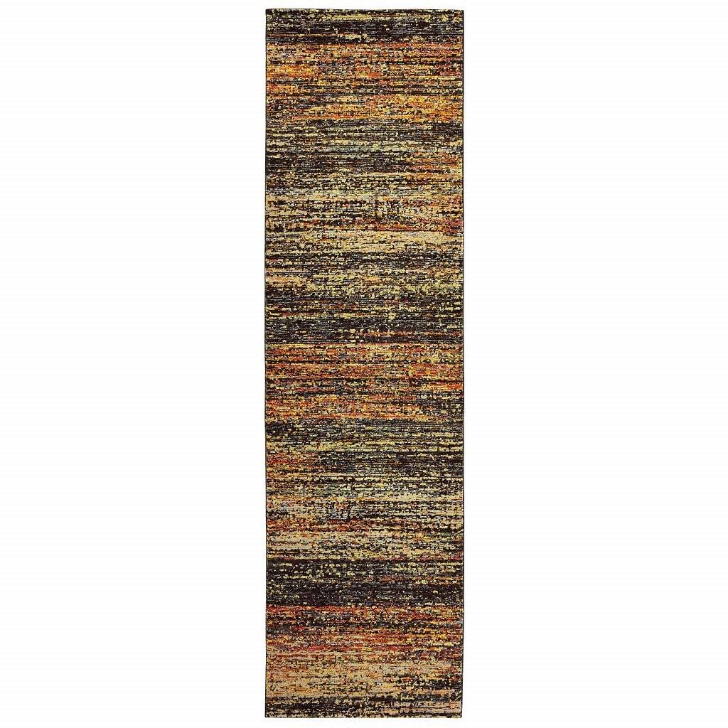 2 X 8 Gold And Slate Abstract Runner Rug