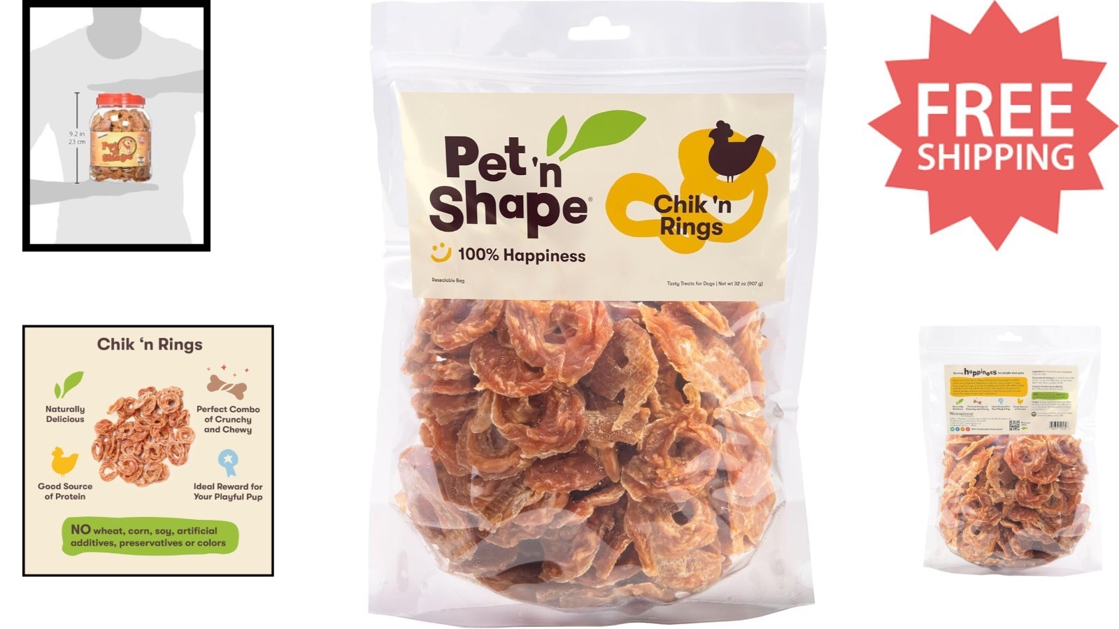 Pet 'n Shape Naturally Delicious Chik 'n Rings are dog treats crafted from 100% all-natural chicken breast, shaped into tempting rings. Grain-free and free from artificial additives, colors, preservatives, wheat, corn, and soy, these treats offer a healthy, high-protein snack suitable for dogs of all ages and breeds. Carefully roasted to ensure quality and flavor, they come in resealable packaging for maximum freshness and convenient storage. Perfect for rewarding or training your furry friend. To ensure fast and reliable delivery, we work with multiple fulfillment partners and suppliers. Depending on availability and location, your order may ship from different warehouses or arrive in packaging that varies from item to item. Tracking details are typically provided shortly after shipment, and customer satisfaction remains our top priority. Please note that due to carrier policies and regional regulations, certain items may not be eligible for delivery to specific states or territories.