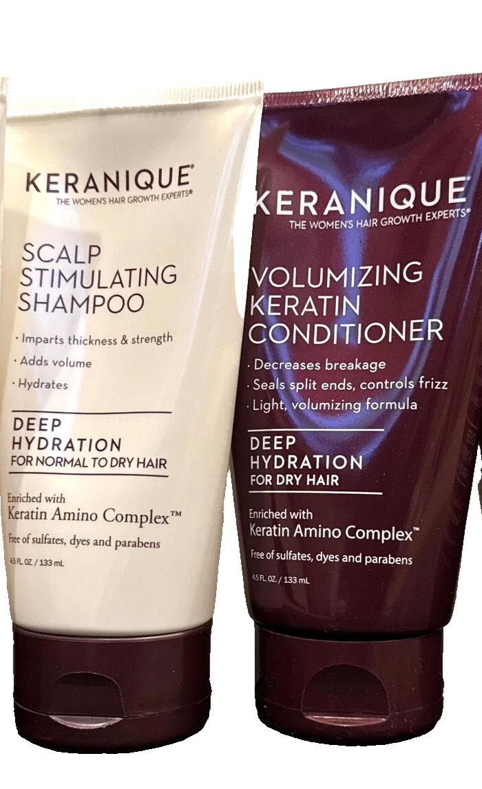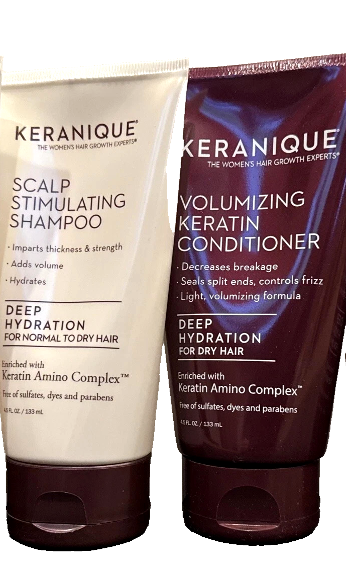 - 2 x Keranique Scalp Stimulating Shampoo & Volumizing Keratin Conditioner 4.5 Oz.