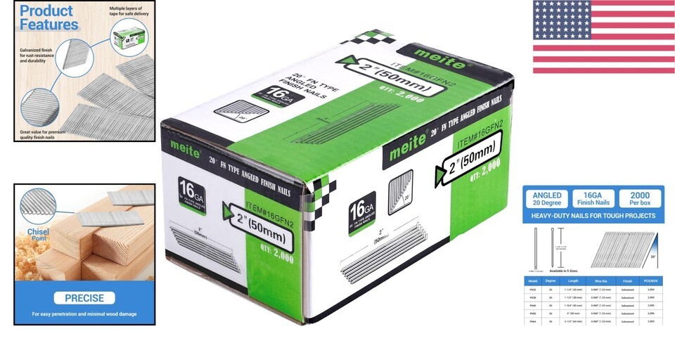 - 20-Degree 2-Inch Galvanized Finish Nails - 2,000 PCS for Woodworking Projects