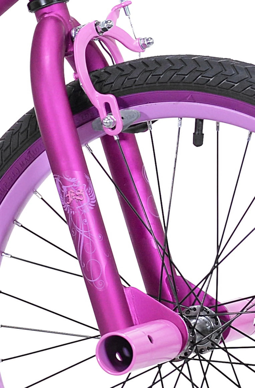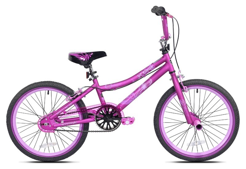Young ladies will love riding this 2 Cool BMX Girls' bicycle out with their friends. It features a durable steel frame with a drop bar to make mounting and dismounting easy. It has both a rear foot brake and dual hand brakes to give the rider improved control. This 20" BMX bike includes single-speed gearing and plastic pedals that will provide her with plenty of power to ride on flat surfaces and small hills. Steel BMX handlebars provide exceptional steering capability. This fun girls' bike comes with a colorful padded seat that will provide a comfortable place to sit while she rides. The Kent BMS bike comes in a fun satin purple color. If you select Site to Store delivery, you can call your local store, as complimentary assembly may be offered at that location. Perfect for your child.