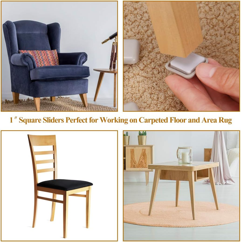20 PCS Self-Stick Furniture Sliders,1 Inch OD Square Furniture Sliders for Carpe