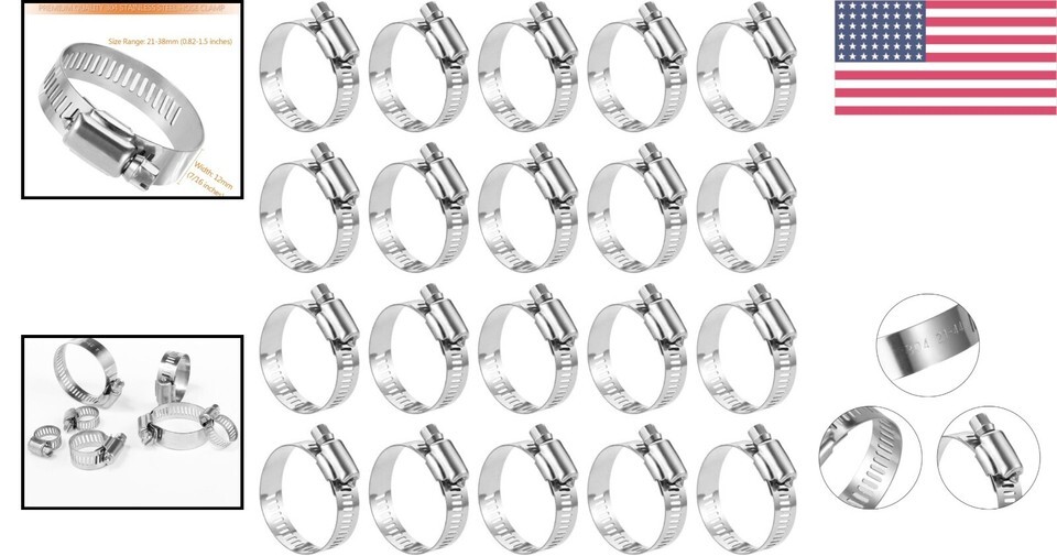 - 20-Pack Adjustable Stainless Steel Hose Clamps 7/8'' - 1-1/2'' - Premium Quality