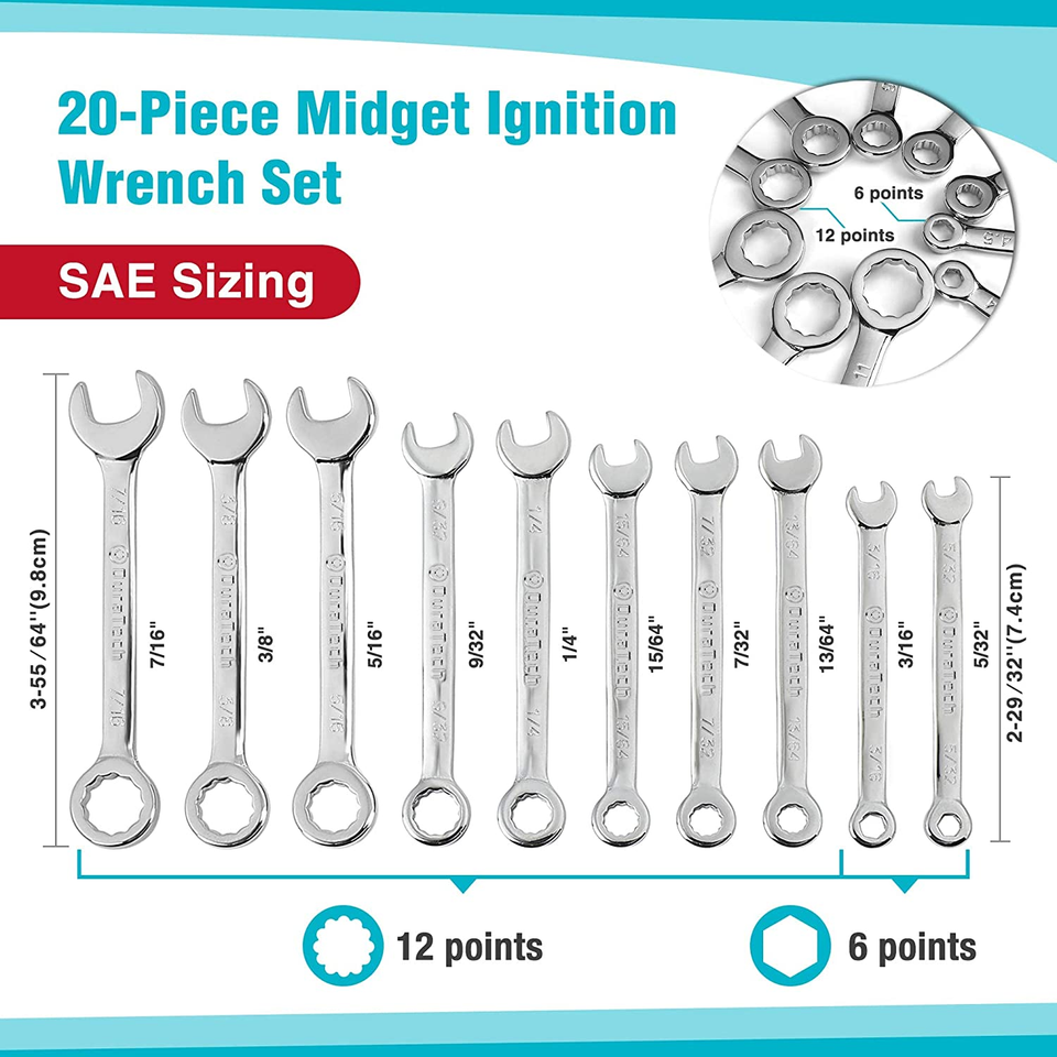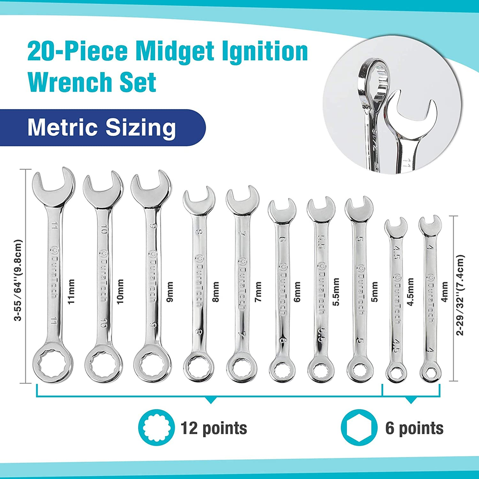 - 20-Piece Mini Wrench Set, Metric & SAE with Rolling Pouch