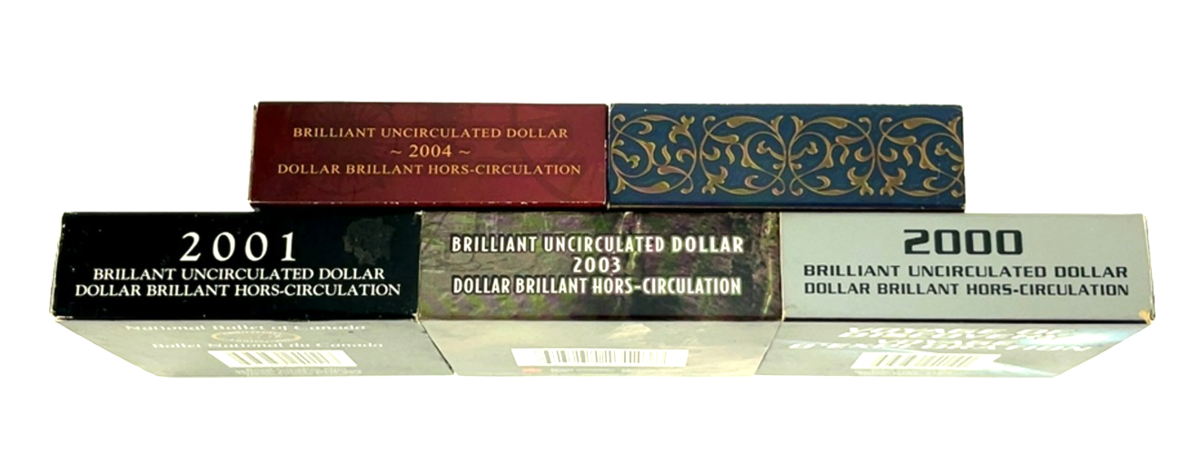 Dolares canadienses 2000-2004 de la Royal Canadian Mint - Lote de 5 piezas