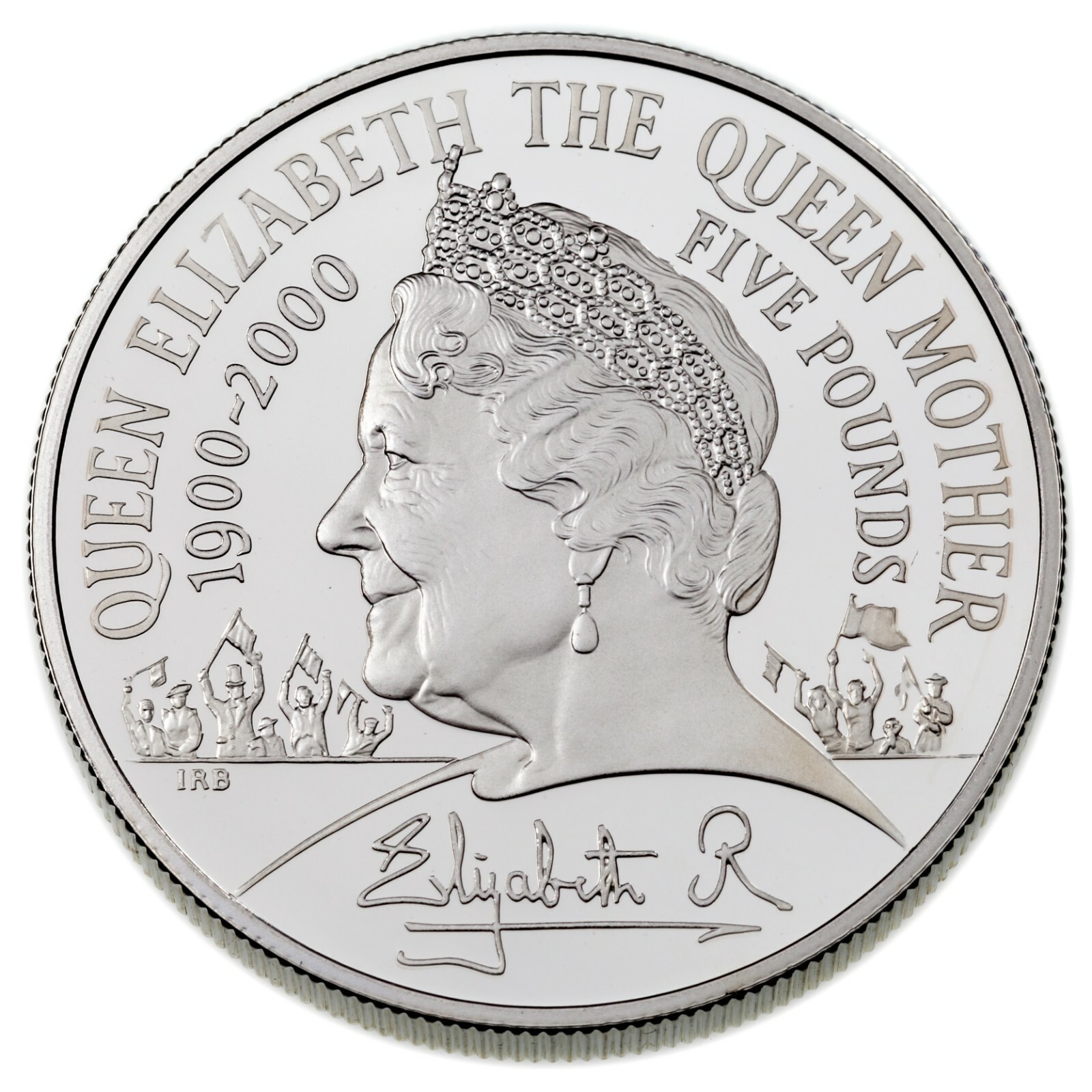- 2000 Great Britain Silver Five Pound Proof Piedfort Coin, 100th Birthday KM P112