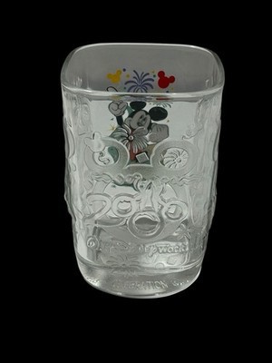 The product is a collectible glass cup featuring Mickey Mouse from the Walt Disney World franchise, released in 2000 by McDonald's. This item holds sentimental value for Disney collectors and fans of vintage memorabilia. The design showcases the iconic character in the Magic Kingdom setting, making it a unique and nostalgic piece for anyone interested in Disneyana.