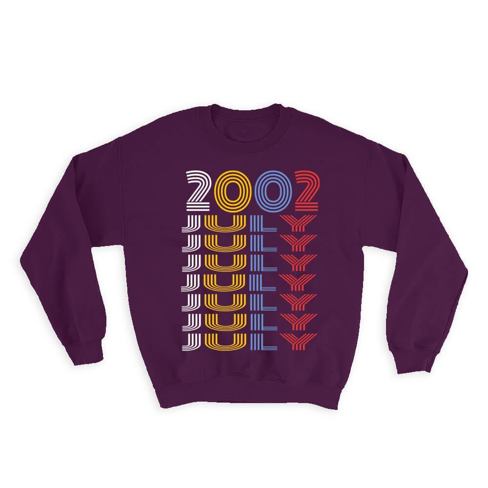 Primary image for 2002 July Colorful Retro Birthday : Gift Sweatshirt Age Month Year Born