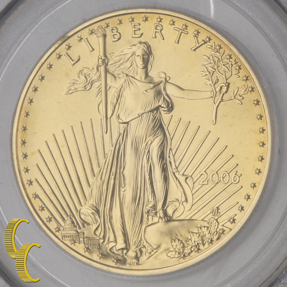 - 2006 1 oz Gold American Eagle $50 Graded by PCGS as MS-69 First Strike