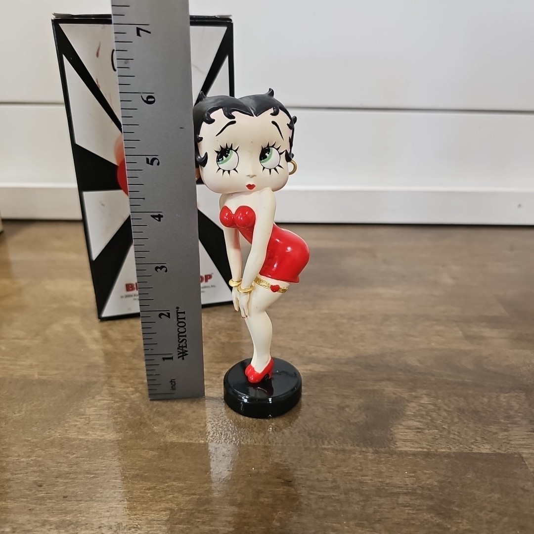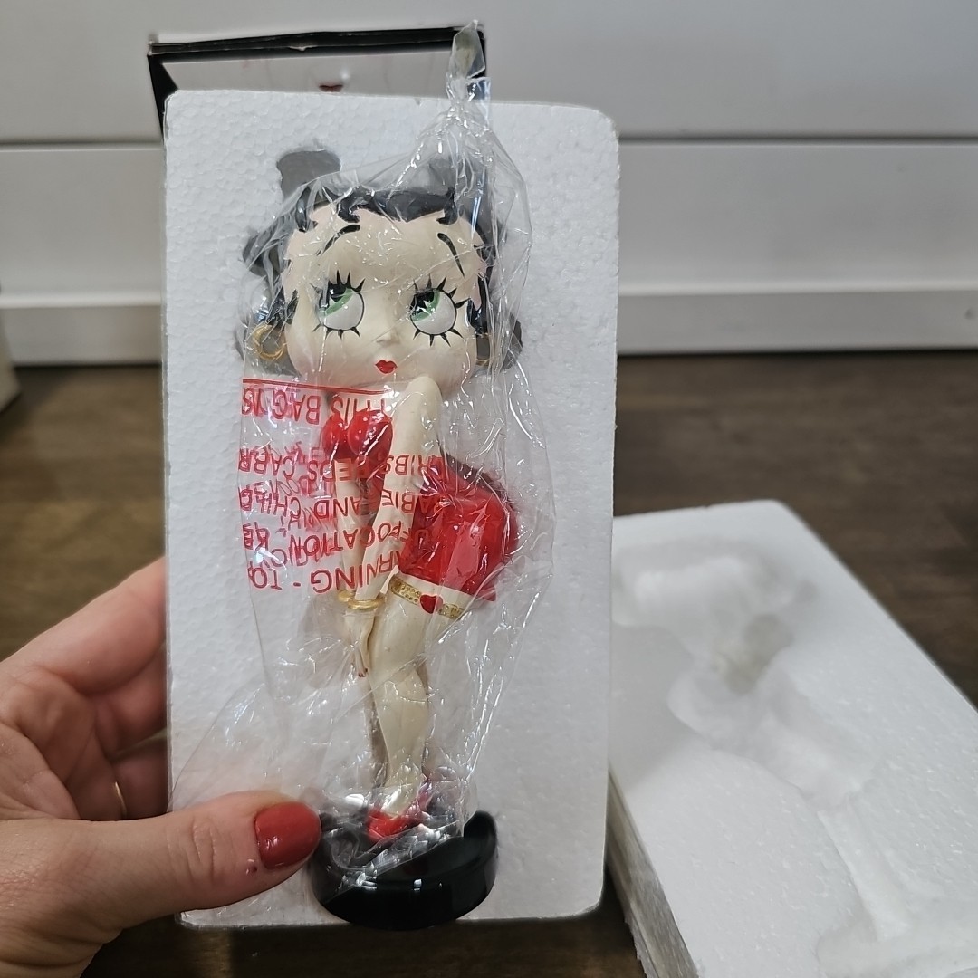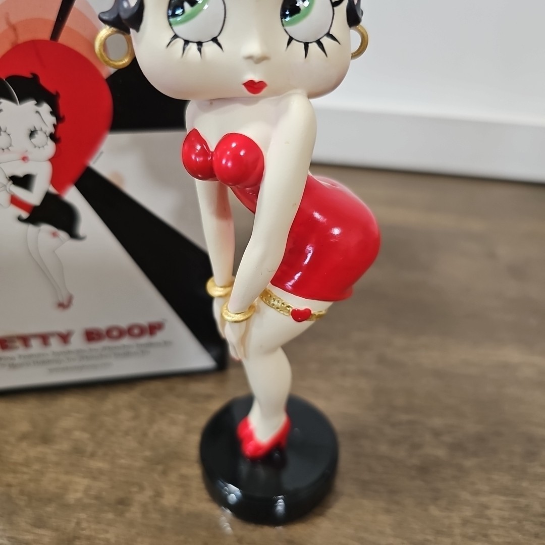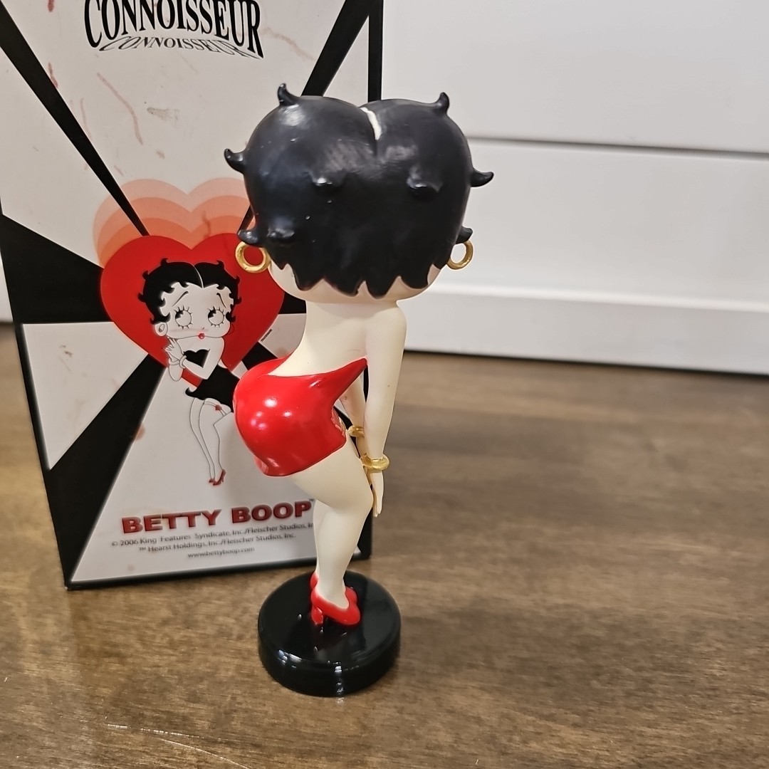 The Betty Boop Goes Red Figurine by Connoisseur is a vintage collectible featuring the beloved character Betty Boop in a vibrant red color. This ceramic figurine comes boxed, making it a great addition to any animation merchandise collection. With its nostalgic appeal and classic design, this piece is sure to be a timeless treasure for fans of the Betty Boop franchise.