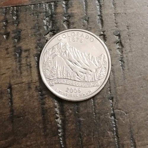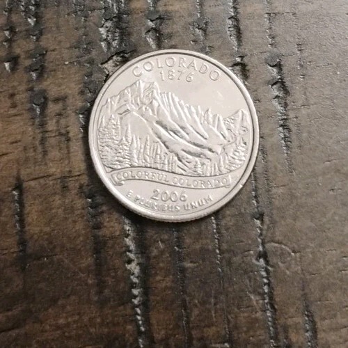 The product is a 2006 Colorado State Quarter, a type of United States coin that is part of the State Quarters series. This coin is composed of copper with a fineness of 0.917, making it a business strike. It is a circulated single coin that is ungraded and uncertified, featuring the variety of Colorado. Collectors and enthusiasts of coins and paper money may find this particular coin to be of interest due to its historical significance and unique design representing the state of Colorado.