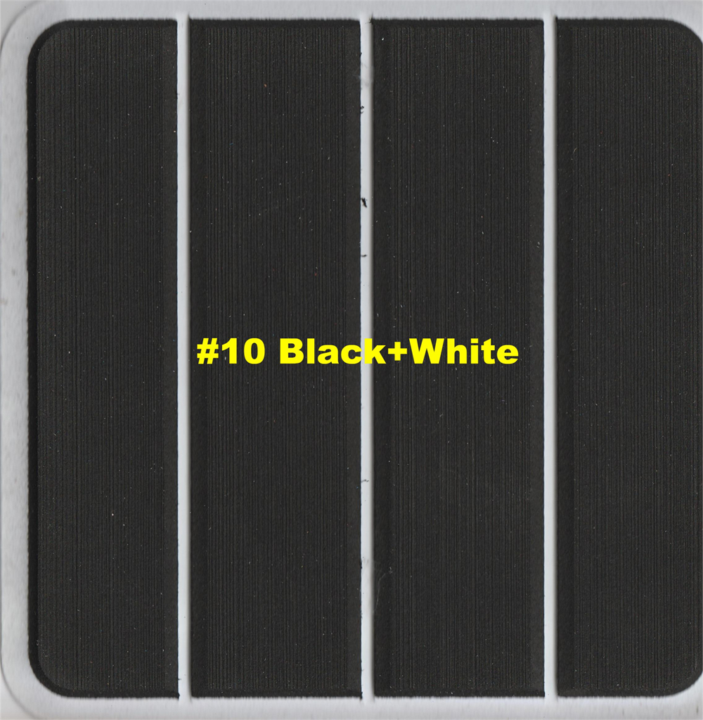 The EVA floor is 1/4"(6mm) thick two-color pad. You can choose your colors, texture and faux teak option. Additional custom text logos can also be incorporated on EVA floor. All routed logos and beveled edges will show the bottom color selected. All EVA floors come with marine backing glue. All EVA floors listed on our online store are "made to order" and not stocked so please allow up to 2-3 weeks for delivery.