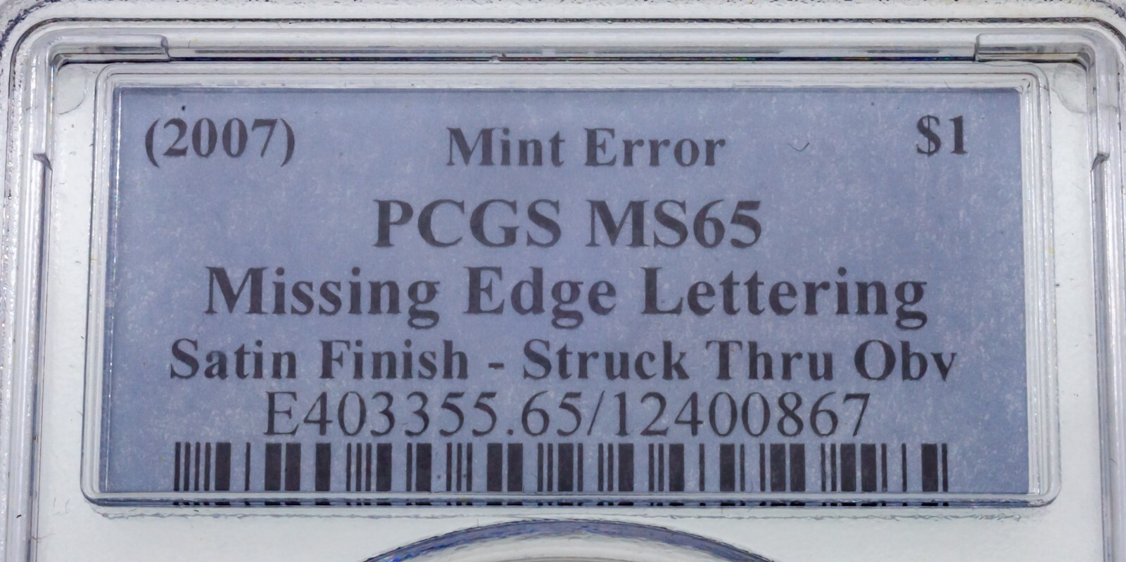 - 2007 James Madison Mint Error Missing Edge Lettering Struck Thru PCGS MS65
