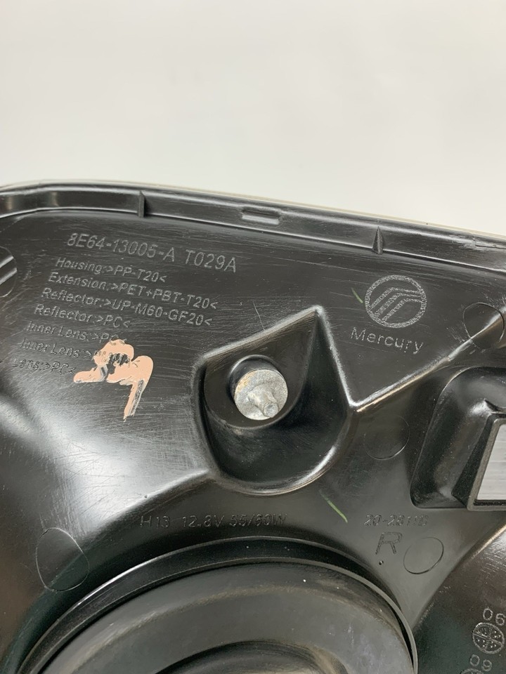 Stock 1703a Used 2008 09 10 11 Mercury Mariner Front passenger right side headlight assembly OEM nice used condition cleaned and ready for use no cracks or breaks no major scratches or gouges No broken mounting tabs or repairs Nice lens with some typical light distortion / crazing marks from sun , Cannot be felt from outside of lens see pics No yellowing of lens see pictures and ask questions shipped fast and secure and secure? fedex ground
