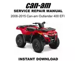 Factory OEM Manual This manual includes model year 2008-2015 for the Can-Am Outlander 400 EFI. This service manual is the most up to date version. This manual would be used by a technician at a shop and may be used for other model years. THIS IS AN INSTANT DIGITAL DOWNLOAD, NOT A PHYSICAL HARD COPY BOOK Upon purchasing your manual, you will receive an email to download the manual. You can also download your manual on your Purchases Page. IF YOU HAVE ANY TROUBLE DOWNLOADING THE MANUAL THEN PLEASE MESSAGE US 2008 Canam Outlander 400 EFI 2009 Canam Outlander 400 EFI 2010 Canam Outlander 400 EFI 2011 Canam Outlander 400 EFI 2012 Canam Outlander 400 EFI 2013 Canam Outlander 400 EFI 2014 Canam Outlander 400 EFI 2015 Canam Outlander 400 EFI