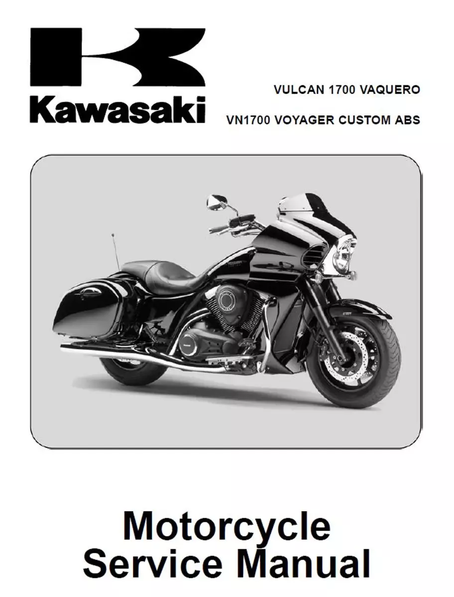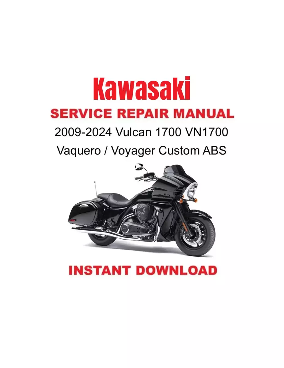 Factory OEM Manual This manual includes model years 2009-2024 for the Kawasaki 1700 Vulcan VN1700 Vaquero Voyager Custom models. This service manual is the most up to date version. This manual would be used by a technician at a shop. THIS IS AN INSTANT DIGITAL DOWNLOAD, NOT A PHYSICAL HARD COPY BOOK Upon purchasing your manual, you will receive an email to download the manual. You can also download your manual on your Purchases Page. IF YOU HAVE ANY TROUBLE DOWNLOADING THE MANUAL THEN PLEASE MESSAGE US. 2009 Kawasaki Vulcan 1700 VN1700 Vaquero Voyager Custom 2010 Kawasaki Vulcan 1700 VN1700 Vaquero Voyager Custom 2011 Kawasaki Vulcan 1700 VN1700 Vaquero Voyager Custom 2012 Kawasaki Vulcan 1700 VN1700 Vaquero Voyager Custom 2013 Kawasaki Vulcan 1700 VN1700 Vaquero Voyager Custom 2014 Kawasaki Vulcan 1700 VN1700 Vaquero Voyager Custom 2015 Kawasaki Vulcan 1700 VN1700 Vaquero Voyager Custom 2016 Kawasaki Vulcan 1700 VN1700 Vaquero Voyager Custom 2017 Kawasaki Vulcan 1700 VN1700 Vaquero Voyager Custom 2018 Kawasaki Vulcan 1700 VN1700 Vaquero Voyager Custom 2019 Kawasaki Vulcan 1700 VN1700 Vaquero Voyager Custom 2020 Kawasaki Vulcan 1700 VN1700 Vaquero Voyager Custom 2021 Kawasaki Vulcan 1700 VN1700 Vaquero Voyager Custom 2022 Kawasaki Vulcan 1700 VN1700 Vaquero Voyager Custom 2023 Kawasaki Vulcan 1700 VN1700 Vaquero Voyager Custom 2024 Kawasaki Vulcan 1700 VN1700 Vaquero Voyager Custom